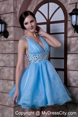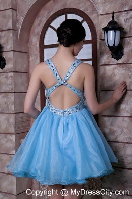 Do you want to experience the feeling of being the spotlight? This aqua blue prom dress will make your dream come ture.It features a strap bodice with a sweetheart neckline and lovely ruches throughout.The wasistband with crystals and sequins in the middle contours your curve. The layered short skirt and the open back add the charm.A stunning dress you can't miss.