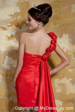 An gorgeous sexy short prom dress for you to choose. A lovely one shoulder neckline decorated with flowers on it.The pleated bodice and the zipper up closure creates a slim silhouette. A flowing train adds the elegant look of the dress. Wearing this dress, you will light up the night.