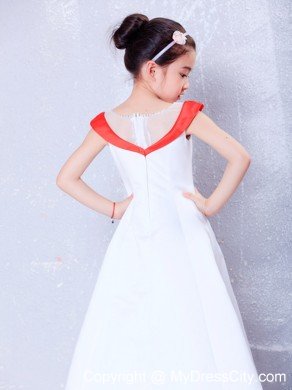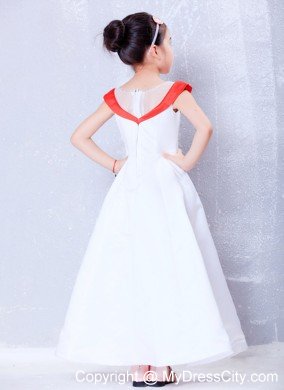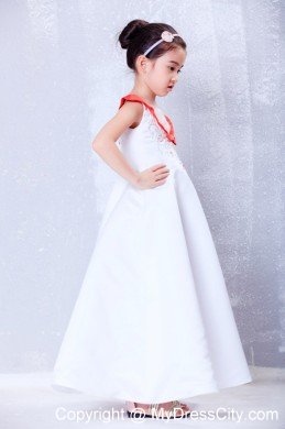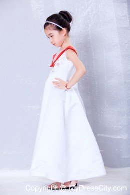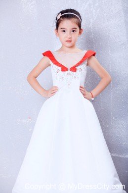 Your honey will be a little princess in this white dress! Demure see-through tulle made neckline covered with a red collar adds more interest to this dress, and bodice is made from lovely beaded embroidery which refined the dress. The A-line skirt flows freely from the waist that made your sweet the Snow White! A zipper up back that ensures a perfect fit and easily put on and off. Your baby will be sure to be a belle on the occasion!
