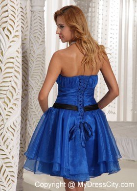 If there is a kind of fabric that ever girl want to wear, then it must be organza. Light ,dreamful and comfortable organza is always the favorites of the designers to make dresses. This short prom dress is accented with a modest sweetheart on the ruched bust and a broad ruched waistband to contour your figure. The black belt around the waist adds some details in the mid-section. The mini-skirt has two tiers of organza creating a dramatic effect and show off your legs and shoes. The back features a corset-style closure that ensures a perfect fit.