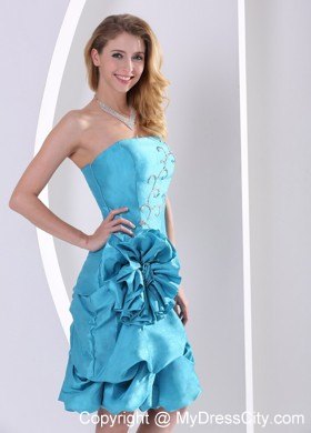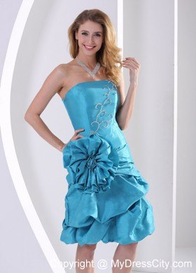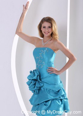 Fancinating and enchanting. Elegance and grace is written all over this dress. Strapless dress enjoys most popularity in the market. As is often seen,stars often choose strapless dresses to attend formal events. The skirt is adorned with pick-ups. The skirt is also embellished with a big flower on the hip area. A supreme dress for those occasions when you are longing for spotlight.