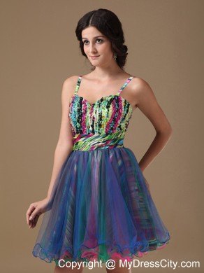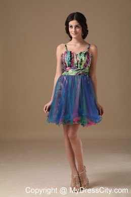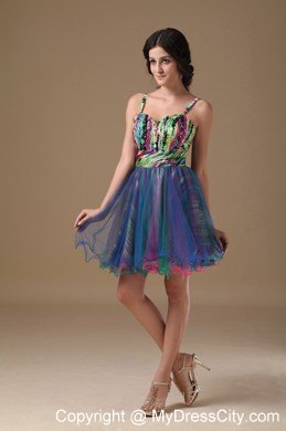 This muti-color mini length sweetheart neckline dress is full of wild and exotic. If you are a man of character, this dress is to your taste. The knee length shape will hide your fuller bottom and show your sexy legs perfectly. Ruched blow the waist emphasizes your subtle curves. The sheer outer layer fabric adds the charing look of this dress.