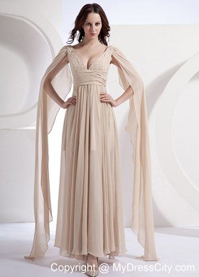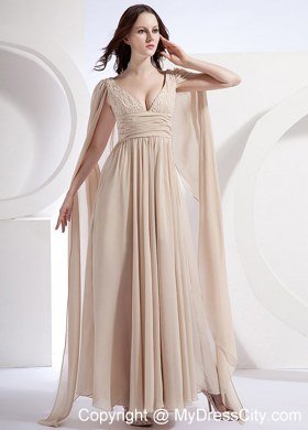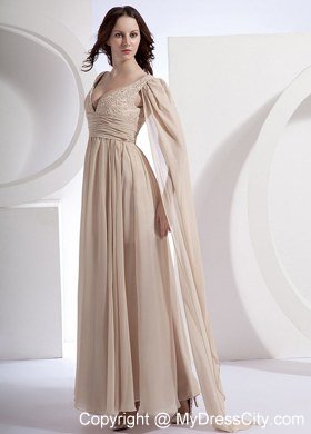 This beautiful full length gown highlights the sophistication of your evening out. This v-neck gorgeous prom dress features chiffon watteau sleeves, the bodice is accented with shinning beading, the pleated broad band forms another beauty, the skirt is lithe and pleated, all these elements combined perfectly, wear this dress and you will be the shinning star!