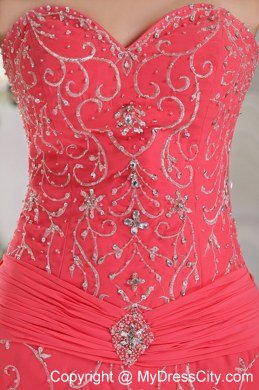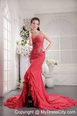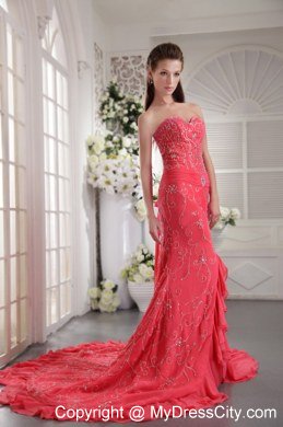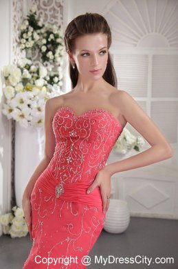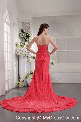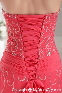 Add some glitz and glamor to your evening with this embroidery and beading studded dress. This one has a lovely strapless bodice made from beautiful embroidered and beaded satin. It has a corset-style closure in the back that allows for a perfect fit. The skirt extends into a pretty mini-train in the back. A traditional look � perfect for anyone to be.
