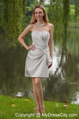 You are still worried about your dating dress? You still don ? know what your dress will look like? This sliver short taffeta prom dress must be your best choice. This fabulous short dress features with strapless and bustline ruched design, which is entirely showing your sap and vogue. The sliver color is graceful and adorable, which will always attract attentions of all. The unique pleated design and special style lead the fashion all the time and you can ? miss it!