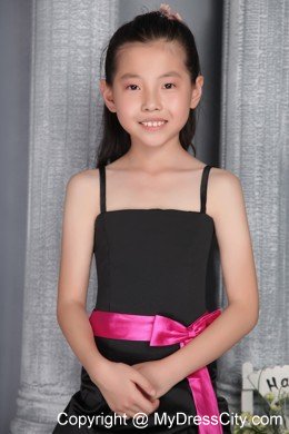 Black sleeveless flower girl dress features a square neck bodice with lovely spaghetti straps and a bright pink waistband accented by the chic bow. Made of satin. One of the most elegant fabrics, satin has been associated with classic and glamour since its popular introduction into the fashion world. The gorgeous skirt is a traditional A-line shape is highlighted by ruched tiers. Floor length and sheath style is elegant and vogue.