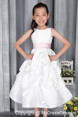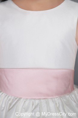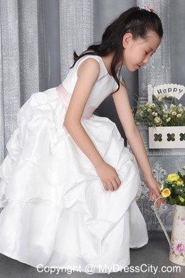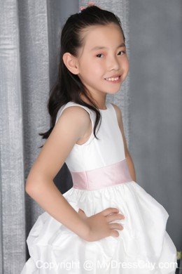 Do you still searching for an amazing flower girl dress for your little girl? This romantic white taffeta flower girl dress is your best choice! Decorated by a cute pink sash, this empire waist flower girl dress gives girls a feeling of gentle and romance. The A-line short skirt is made in a lovely ruched fashion.Wearing this you look like a fairy coming from fantastic fairy tale. Exquisitely designed, delicate and grace make every girl become the most sweet and gorgeous eye-catching in the wedding and other special occasion.