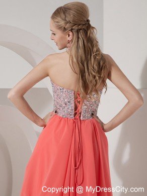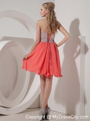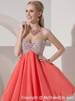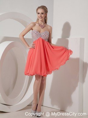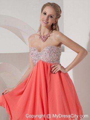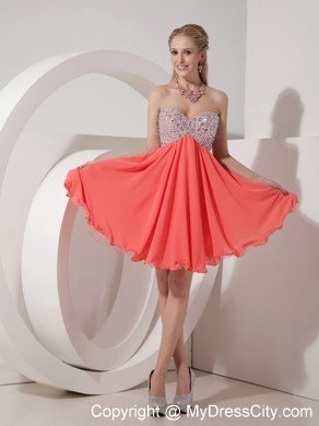 A fabulous and wonderful dress for you to choose. It features a sweetheart strapless neckline and a short skirt. The bodice is over decorated with beads and rhinestones to add a shinning and a stunning look. The knee-length skirt flowing from the waist and add the dress a flowy feeling. A lace up back finishes the design. The dress is fit for any formal and informal occasion.