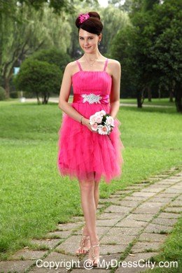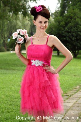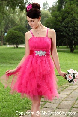 Short dress with more ornate designs are becoming more popular. This one is a gorgeous example of what we mean! The pleated bodice features two spaghetti straps and a straight neckline to flatter your figure. A solid color satin waistband is ornamented with a beaded and studded brooch for accent. The mini-length skirt is shapely made from many sheer layers of playful tulle overlayed which adds to its overal fullness. A hidden zipper makes for easy off and on and secures the dress in place. Such a sweet dress, why not choose it?