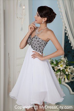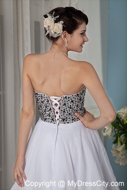 This sweet black and white strapless dress is a darling choice for those dressier who wants to wow the crowd. Crafted from classic chiffon it features heavily embellished bust with shimmerring beadings accents. The lightweight skirt falls in a soft and flowing style�creating a luxurious feminine feel. A lace up style secures the back of the knee-length skirt.