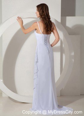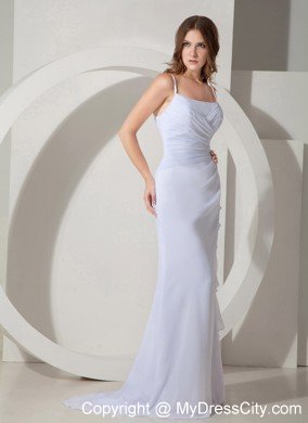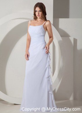 This unique little number is sure to make you look and feel amazing in this spaghetti straps dress. It features a straight strapless neckline on the contrasting ruching accents shaping your slim bodice. Asymmetrical pleating on the empire waist also creates a flattering trim fit while vertical ruffles on the floor length skirt add to the drama. A corset-style closure secures the dress in place and ensures a great fit.The skirt spiced by a chapel train sweeps out slightly as if you are walking on air.