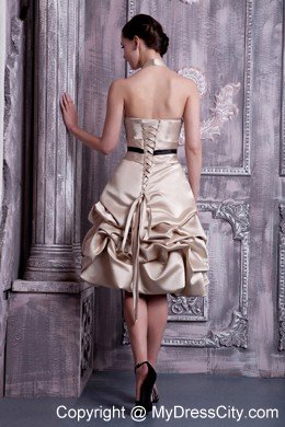 If you're looking for a dress that's not quite formal, but not too casual, this one is the best choice. It features a pretty halter-style bodice with a dainty contrasting waist sash and a lovely A-line skirt. The skirt is made from several tiers of ruched material that creates a fashionable bubble style hem. A corset-style closure secures the dress in place. Not too formal, not too casual. A lace up corset style closure in the back secures the dress in place.