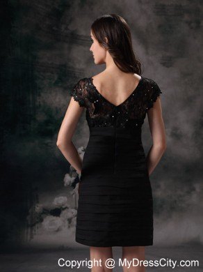 If you love showing off your soft feminine side, then this short minidress is right for you. The lace straps around the bust are adorned with glittering crystal accents The sheath bodice gives to ruching throughtout from empire waist.The back of the dress has a plunging V shape. A beautiful dress for graduation, homecoming, or any occasion when you want to look sweet yet sassy.
