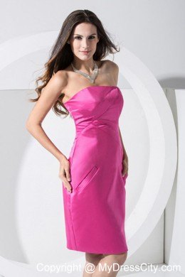 The bodice accented by the straight neckline flatters most figures. It truly is an example of high end couture fashion. The knee-length skirt is hot pink and made of satin. The column style and zipper up back complete the look. You are sure to be charming and fabulous at your very special day.