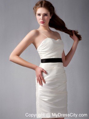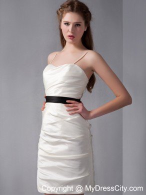 This elegant creation is absolutely the right choice for you! Ruched bodice with spaghetti straps on the top helps to create the illusion of a fuller bust line; dropped waist and adorned waistband help to create the appearance of a curvier waist and flatters your slim line. The contrasting waistband in the midsection makes the whole dress a classic. Pleated skirt completes the flattering silhouette. A hidden zipper in the back makes for easy off and on and secures the dress in place. This creation surely can enhance your femininity nicely.