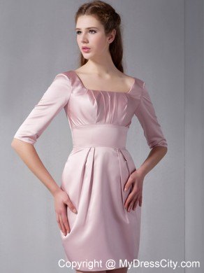 Simple but elegant! This classical creation is designed in a simple but traditional style. The unique square neckline on the top helps to visually widen your shoulders and chest area before extending to a scoop neckline in the back. Ruched details on the top create a beautiful shape of your chest. The midsection of the gown is cinched by a broad waistband that perfectly complements the pleats on the mini skirt. The 1/2 length sleeves help to cover your arms and complete the elegant look. A hidden zipper in the back secures the dress in place and makes for easy off and on.