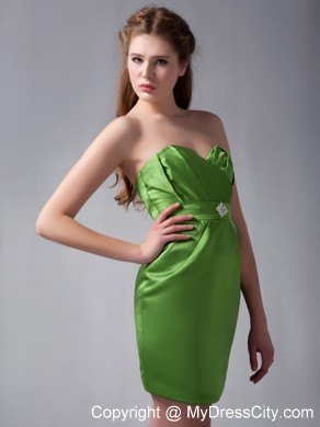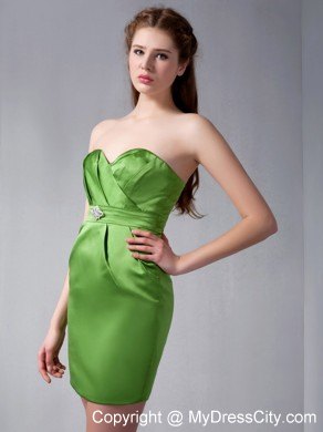 Bridesmaid dresses don't have to be overly ornate to be memorable or special. This one is a perfect example of that testament. This dress is strapless with a pronounced sweetheart neckline and light pleating through the bodice. The waist has a tonal detail adorned with a shimmering ornament and the skirt has a pencil shape with a modest hemline. A zipper closure ensures the fit and secures the dress in place. This is a classic pick that every woman needs in her wardrobe.