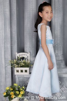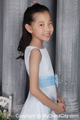 Outfitting the bridal party is almost as much fun as shopping for you wedding gown � especially when it comes to the young ones. This lovely dress features a boat-like neck bodice and lovely A-line hemline. The skirt is light and straight, which means it will be comfortable on. A contrasting waist sash with a flower embellishes the midsection of the dress and can be coordinated to match any color scheme. Simple, yet beautiful!