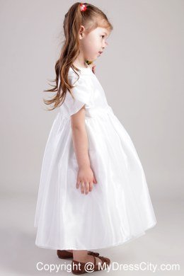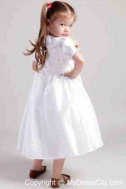 Your little one will be the belle of the ball in this dress. This dress is straps. The flared, floor-length skirt is nicely offset by the draping bow that sits atop one shoulder strap.