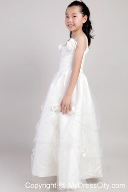 This dress is sleeveless wiel tiny with tulle straps. Texture covers the top of the dress and a taffeta on the skirt which is full with layers of textured tulle for a whimsical look. The zipper up on the back. Available in any color you like.