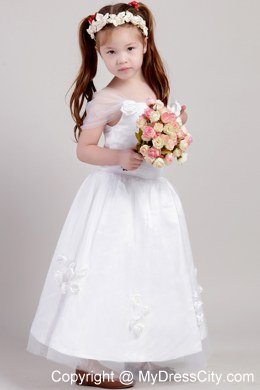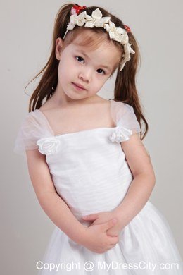 This formal dress for little girls has tulle sleeves and taffeta overlay through the torso.The skirt is accented by appliques flowers and the tulle on the outside. The back of the dress is zipper up. Layers of tulle create a celestial look.This dress is the best choose for any occasions.