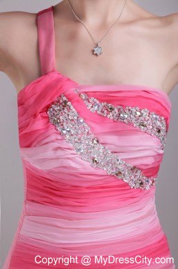 You hesitated to buy a baby pink dress or a hot pink dress? Choose this dress will get ride of your hesitation! You will look lovely in this exclusive one shoulder mini dress! Flattering rushes adorn this fitted silhouette make you a belle! Shimmering beading work on your bust highlight the dress. You will size your day in this lovely mini.