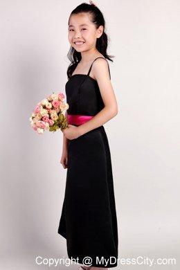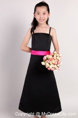 The pretty design of this A-line flower girl dress is sure to put a perfect finishing touch on your big day! Its top features a straight-cut neckline and spaghetti straps that make for a classic look. A contrasting waistband breaks up the look nicely. A hidden zipper makes for easy off and on. The gloriously flared skirt is sure to make your little girl smile!