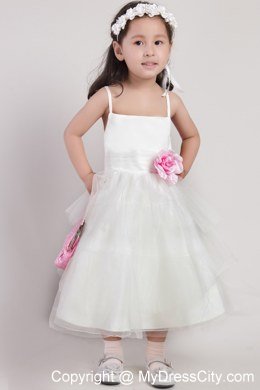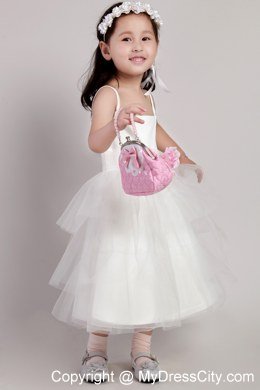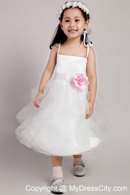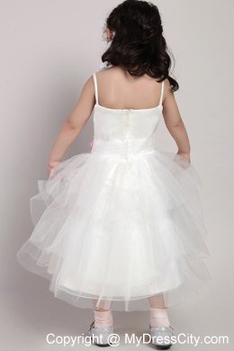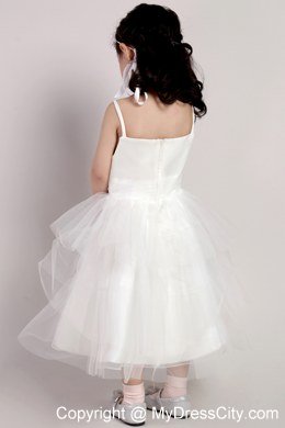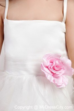 This sparkle tulle flower girl dress features a tank bodice with spaghetti straps, and a hand made flower make the dress more noble. The puffy tulle on the skirt make the dress graceful and white color is holy. Your baby will look like a princess when she wear this gleamy dress. This cute dress is a great choice for your little angel.Zipper up back.