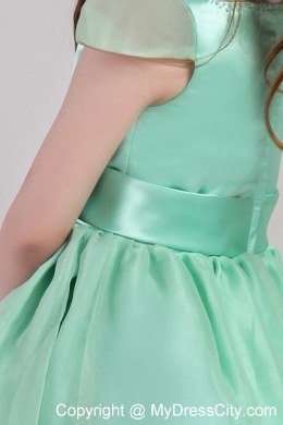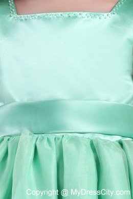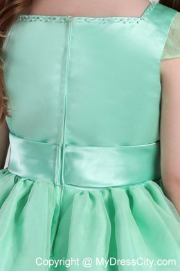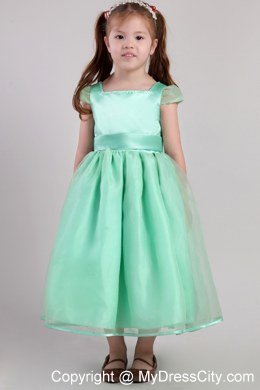 This organza flower girl dress displays a tank bodice and square neckline. The style is simple but elegant.The sash around the waist make the dress lovely and delicate.This beautiful dress is a perfect choice to make your little pageant girl a star!Zipper up back.