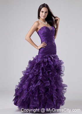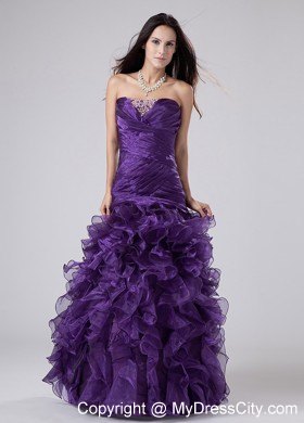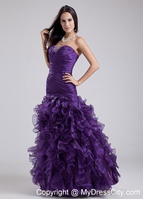 Your charming face will be all the guests see in this gorgeous dress. This is a purple dress with straight neckline and crisscross ruched bodice. The floor-length ruffled skirt sways elegantly and freely when you move. You are sure to be charming and fabulous in the party.