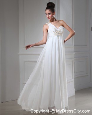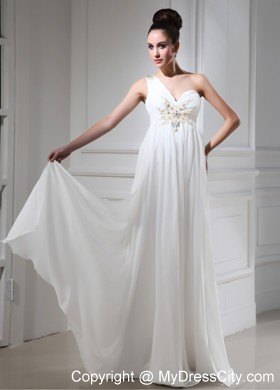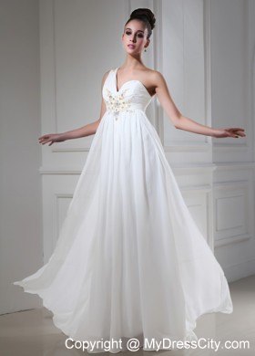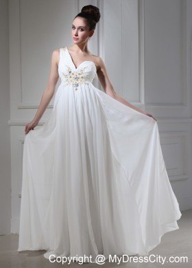 This dress is simple but gorgeous! It features a beautiful ruched bodice with a one shoulder strap and beaded bust. The wrapped bodice shows your slim figure and the chic empire waist camouflages a pear shape or thick waist and creates an illusion of height for short or petite figures. The floor length skirt moves and sways when you walk, creating a wonderful silhouette. By the way, this gorgeous one shoulder empire wedding dress is the new arrival in 2013!