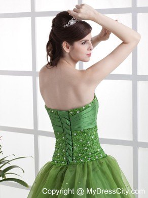 This dazzling heavenly quinceanera ball gown features a strapless sweetheart neckline with the whole bodice encrusted with beadings. A ruched band decorated under the bust adds the dress loveliness and sweetness. Puffy flowy skirt with scattered beadings and corset back make this dress. Magnificent.