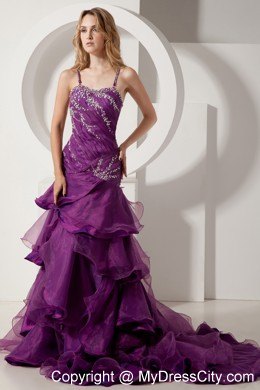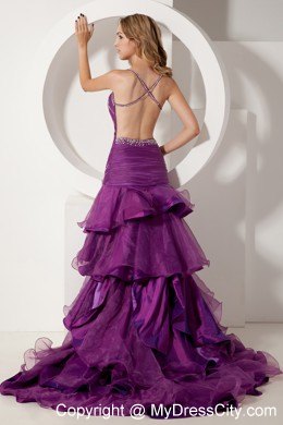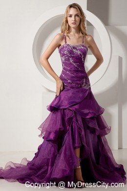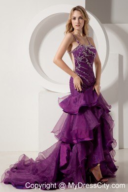 So so Sexy, You will absolutely love this prom dress . You are so charming when you wear this purple gown. This one features straps bodice with boning details and silver beadwork throughout. The open back style will show your fascinating back. The floor-length skirt is a long and winding series of ruffles that begins at the hips and envelopes the legs in luxurious tulle all the way to the floor in a pretty A-line shape.