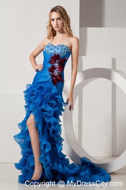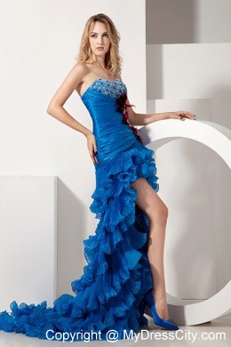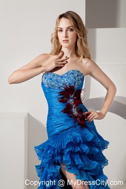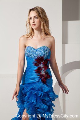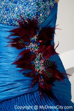 Strapless dresses are one of the hot styles on the market today.This one features a lovely strapless wrapped bodice with beading details and pleat throughout. The vertical airy feather over the midsection adorned with silver beadings to make the dress more shinning in the spotlight. The highlow skirt is straight, but fitted and is comprised of many ruffled pieces that are sewn asymmetrically throughout the skirt. Whenever you wear it, there is no doubt that you are the spotlight for the night in this beautiful dress! Believe me you will like it. It is worth buying.