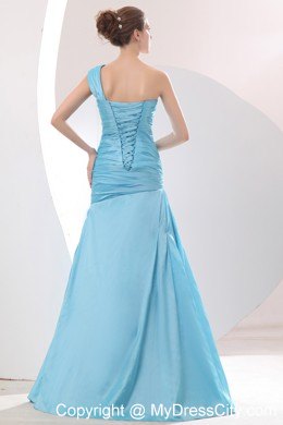 Perfect for any formal or informal occasion, this glamorous prom gown features an one shoulder neckline and delicate ruching on the slim fitting lace up bodice. Asymmetrical ruches in the bodice and A-line on the skirt part on the whole add elegance to this beautiful prom gown. Surely it will land you on everyone's best dress list.