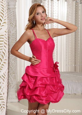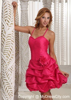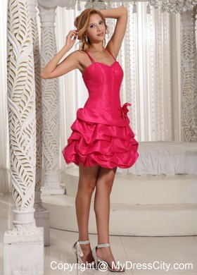 This prom cocktail dress will release your personality in the spotlight! This creation is accented with two spaghetti straps crossed in the open back and modest sweetheart on the fitted bodice. The boning details show off your slim figure. The hand made flower in full blosom bright up the mid-section. The mini-skirt has many tiers of pick-ups that create A chic and sexy silhouette. The back features a corset-style closure that ensures a perfect fit.