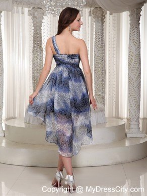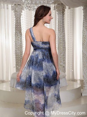 People will lavish you with attention when you wear this fabulous dress! A stuning designed dress made by a special printed fabric features an asymmetrical neckline and ruching detail throughout. The skirt flows out from the empire waistline leading a high-low style. A zipper up back makes the dress for easy off and on.