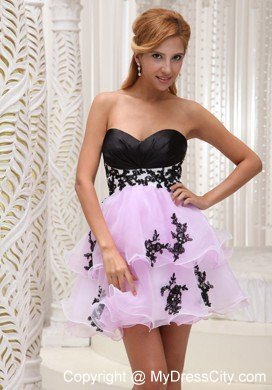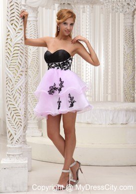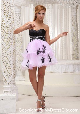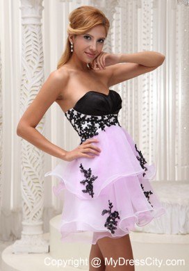 An flirty cute short dress fits for most of the social occasion. The strapless sweetheart neckline with a black bust to show your feminine or girly slim. Sedate black exquisite appliques make the dress elegant. The appliques on the short dress is a fantasting creation that adds the charming to you. The super cute mini skirt with sheer layers give it a full sassy style that will look great on the dance floor and zipper up back finishes the look. You're sure to land on everyone's best dress list.