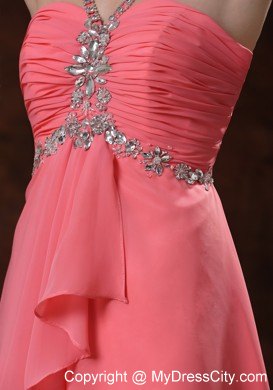 Do you want to be the spotlight on the party? If so, this prom dress will definitely help you stand out. It features a ruched bodice which can conture your perfect figure, while the sweetheart neckline with straps which are encrusted by the beadings and crystals all over is alsolutely gorgeous. To add interest and detail to the dress, ruches have been sewn in the waist area. You are sure to be charming and fabulous at your very special day.
