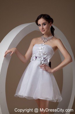Look like a princess in this amazing strapless prom dress style! This white prom dress has off the shoulder design and many lovely white flowers decorates on the structured bodice. The mini-length skirt is overlayed with a sheer organza. When you dance, as if you as if you're floating on air. The focus point is the satin waistband in the mid-section embelllished with a cute bowknot in the back. A hidden zipper completes the overall effect.