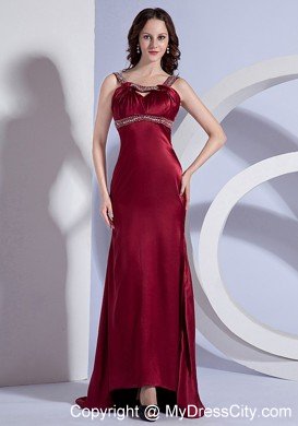 You will look like a million in this long burgundy prom dress! A straps top embellished with beading and special triangle hole give a fresh taste. The fitted bodice sets off your allured curves. The taffeta fabric gives a comfort and smooth feeling to your body. A half open back and a beaded belt under the bust highlights the back and reveal your inner quality to all.