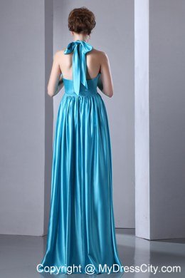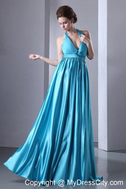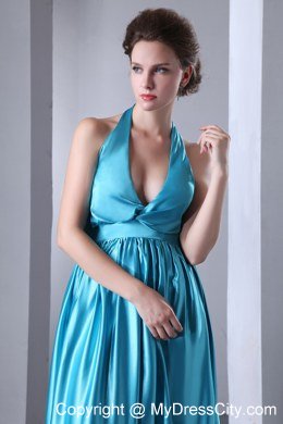 Inspired dresses are quite popular, due to both their beauty and their lovely design. This one features a halter design. The bodice features a V neck and a wrapped texture while the midsection of the dress is made in a bandage style. The long, flowing skirt is quite drooping and airy so that it moves beautifully when you do, creating a ellegant silhouette. The halter can make a bow in the back of the dress that flows down naturely. A very sophisticated look for any event.