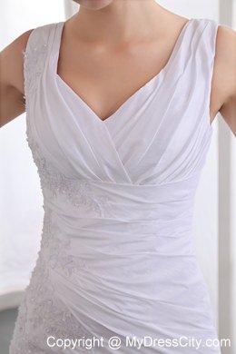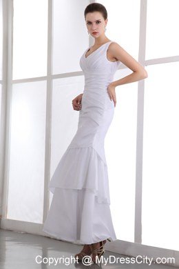 Sheath style dresses are very flattering to just about any body type. That is one of the reasons they are so popular. This one features a lovely pleated pattern throughout the bodice. The bodice extends well over the ham to where the mermaid-style skirt flares out. It's made from two layers of asymmetrical ruffled layers and makes a gorgeous silhouette when worn. A strapless wide shouler straps with a V-neck style. Elegant classy and chic � all in one.