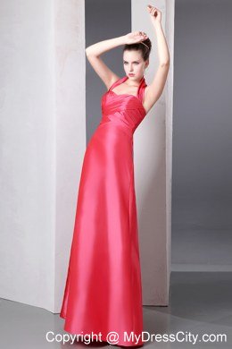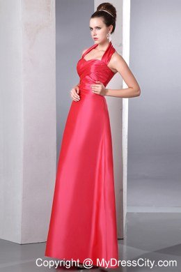 The dynamically prudent fabric of this long dress makes it the perfect choice for a classic pop of vivacious fun! The halter top neckline is overwhelmed with ruchings to add pop to the simplicity of the body. The column silhouette skims the body beautifully, and has ruching at the waist to accentuate curves.