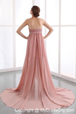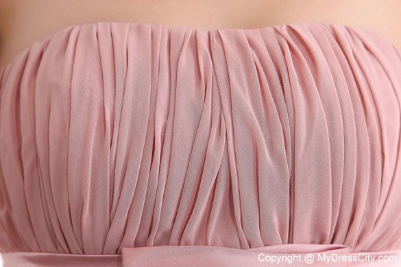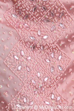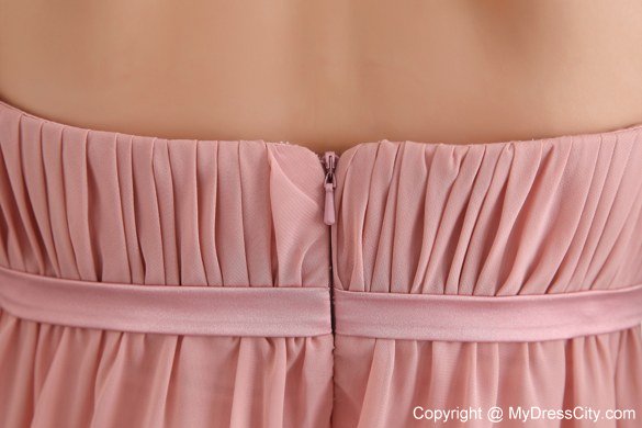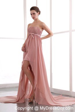 How could you resist the versatile charm of this high-low gown? A baby doll mini dress hightlighted by exquisite beads and rhinestones is formed as the beginning of this flirty asymmetrical design. The bust line features fine ruching and a chic sash rests above the peaked empire waistline. A festive exit is created by the sheer, billowing overskirt that flows flirtatiously behind you as you walk and dance your way through the night.