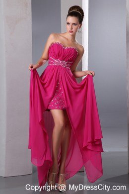 High style meets youthful sophistication with this unique strapless high low prom dress. This strapless dress for prom or formals features a sweetheart neckline with a pleated bodice. Dazzling jewels accent on the neckline and waist add the perfect touch of sparkle. The high-low hemline on this strapless prom dress let's you show off while a sheer long overlay creates a dramatic design that will have heads turning as soon as you arrive.
