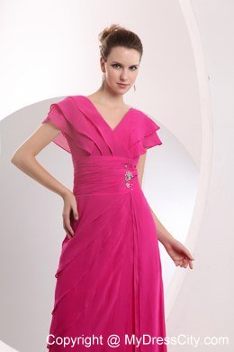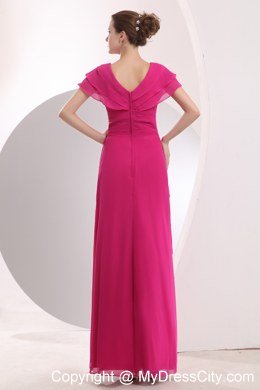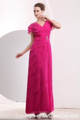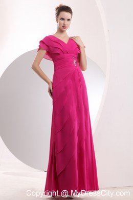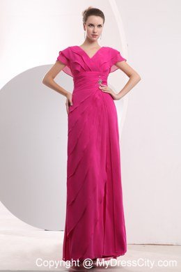 Butterfly layer sleeves are a design element that you don't often see on formal gowns, but the effect they create can be quite stunning, as this beautiful dress clearly shows. It has a lovely V neck with ruched fabric on the waist. The dainty waistband is accented with pretty rhinestones that create a elegant effect. The floor-length skirt has beautiful layer that creates lots of beauty throughout. A flattering and high class design�perfect for those extra special occasions.