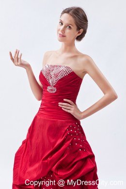 All eyes will definitely be focused on you because of this stunning dress! It features a pretty strapless ruched bodice with beading adorned on the bust. The pick up skirt extends all the way to the floor-length hem and creates a dramatic effect. Wearing this charming dress and you are sure to be the unique one in your party.