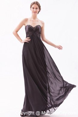 The subdued bodice is encrusted with a sweetheart neck, dainty ruchings and exquisite beadwork decorates the bodice. The high waistline can give a illusion of height. The floor length skirt made from lightweighed chiffon adds more elegance to this lovely gown. A zipper up corset style closure in the back secures the dress in place and completes this fabulous design!