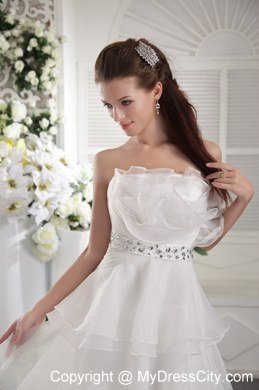 You'll absolutely love this sweety strapless prom gown with romantic ruffles and embroidery.Big, beautiful dresses are the things fairytales are made of tulle and rhinestones. The beautiful bodice is encrusted with tulle, and a gorgeous A-line skirt finishes the look.The back is fitted with zipper up. If the white,pink, is not your color, the dress is also available in several other colors.